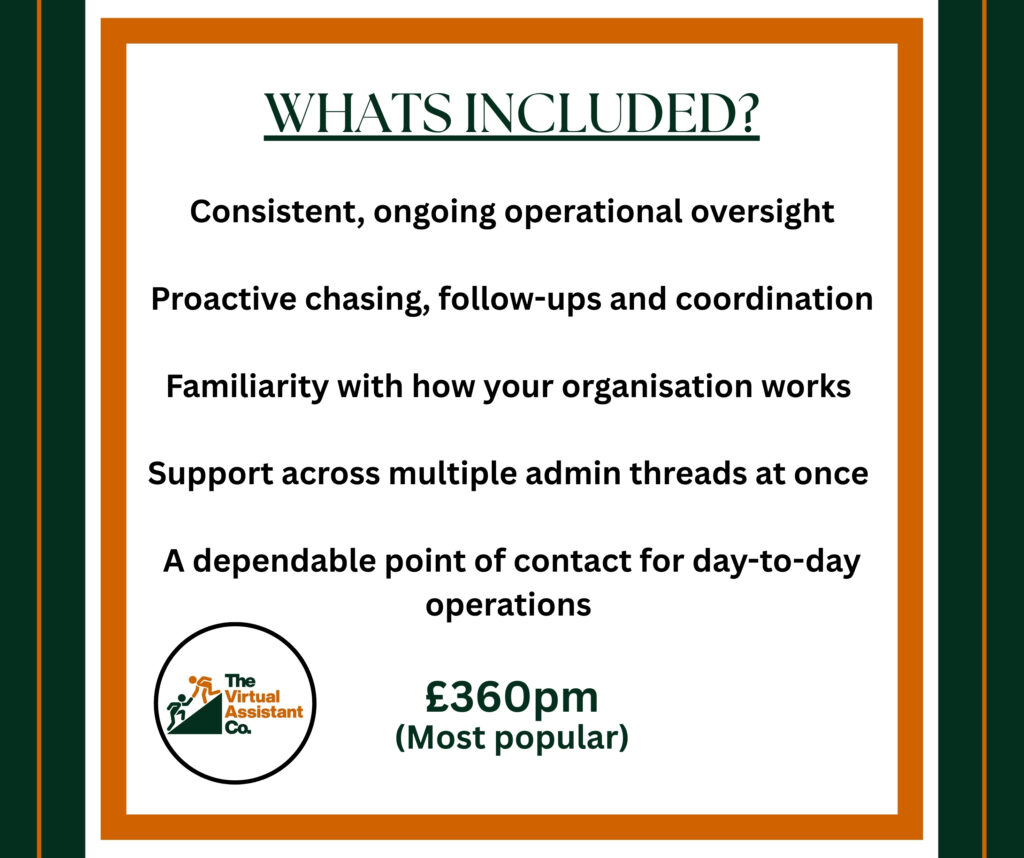 Our Essential Admin & Operations Support Package is designed to give businesses reliable, professional support with the day-to-day tasks that keep operations running smoothly. We help reduce administrative pressure, streamline processes, and ensure that critical operational tasks are handled efficiently, so you can focus on growing your business